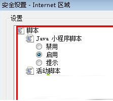 3、最后在弹出的安全设置中,在下方中找到脚本选项,选择Java小程序脚本中禁用,活动脚本中的禁用,然后点击“确定”退出即可操作。