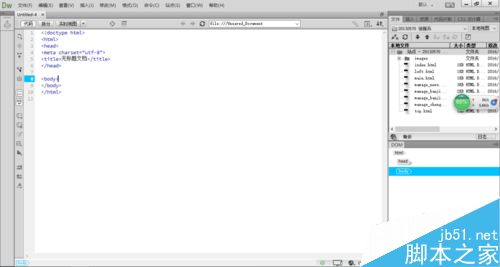 2、执行菜单栏中的"文件>新建"命令或按住Ctrl+N键打开"新建文档"对话框,选择其文档类型为HTML,单击"创建"按钮,即创建一个网页文档。