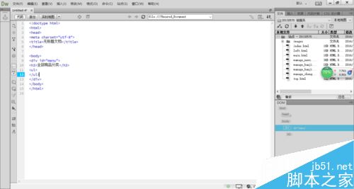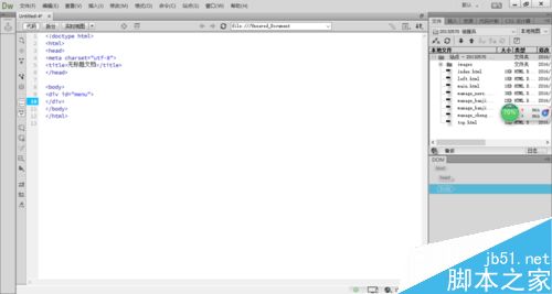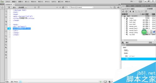 3、<body>和</body>之间添加"<div id="menu"></div>",如下图所示。
