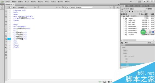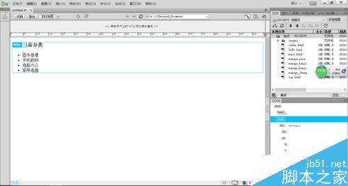 6、<ul>和</ul>之间添加"<li>图书音像</li> <li>手机数码</li> <li>>电脑办公</li> <li>>家用电器</li>",如下图所示。