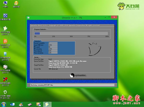 9、转到这个界面,执行系统还原到C盘的操作,耐心等待进度条完成;