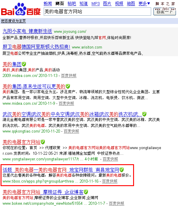以我所在的城市南昌最大的地方消费社区地宝网为例,我在地宝网兴趣小组(http://q.tiboo.cn/)创建的小组基本上都是当天就被百度收录,且一些长尾词的排名还非常不错:
