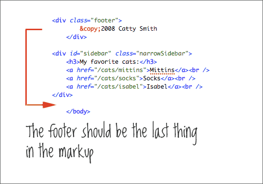 <div> 常被滥用(尤其在我们现在所处的 DIV+CSS 神话中 - 译者),人们希望把任何东西都放在 <div> 中以便为它们分配 CSS 式样,这种滥用会导致的臃肿。