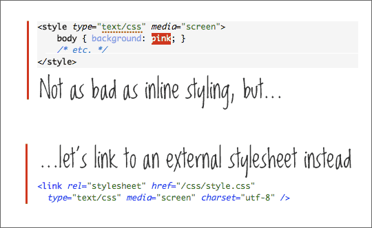 将 CSS 和 JavaScript 放在外部文件中引用,不仅减低单个网页的尺寸,而且意味着其它网页也可以共用这些代码,另外,浏览器的缓存机制可以很好地降低对相同代码的重复下载。