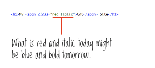 如下图,Cat 的 CSS 类被命名为 red italic,暗示着 Cat 使用红色斜体,如果你想将 Cat 改成兰色的粗体呢?