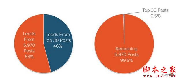 据hubspot的调查数据显示,在一个SEO网站发布的6000篇文章中,浏览量靠前的30篇文章占据了全站流量的46%,而剩下的5970篇文章带来的自然流量仅为54%。