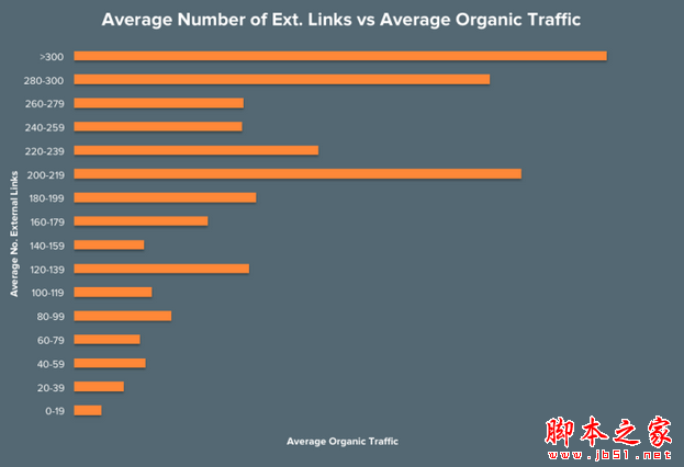 下图为反向链接数量和自然搜索流量平均值的关系表: