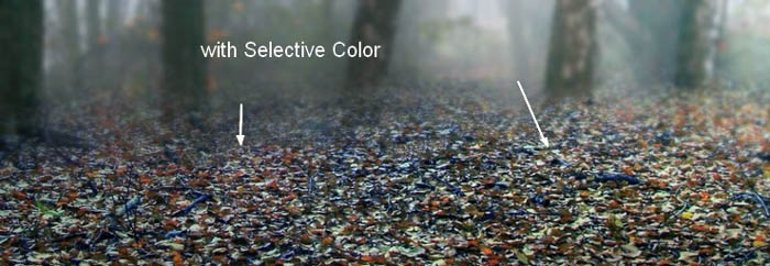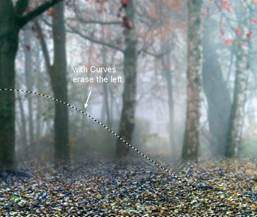 28、在这个图层蒙版,用黑色软笔刷,以减少对以下一些树木的影响。
