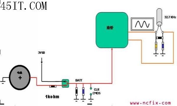 ( 3 ) 。量测D9是否正常,先移除跳线,然后量测二机管D9两边的电压值,看是否为3V的?这样可以判断是不是由于二机管本身造成的,还是由于连接电池的负载引起的,比如: U7 ( I / O )的, U5 ( SC )的,以及C414 。