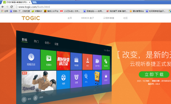 第四步:安装完后,返回到盒子系统桌面,找到“云视听.泰捷”这个应用的图标,点击打开。然后你就能看到各频道类型的选项了。