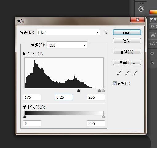 10、按ctrl+l调出 色阶,参数设置如图。最终得到夜景效果