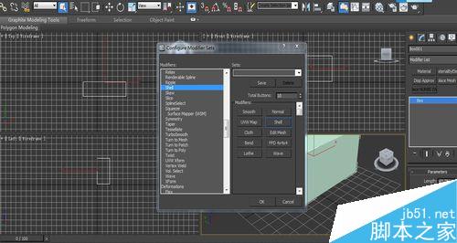 右击修改器的Modifier List成列清单处,选择第一个修改器设置Configure Modifier Sets增加总按钮数量,将常用的修改器按钮增加到面板上。