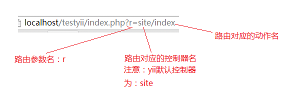 因此上述通过指定控制器名动作名访问的路径和直接访问:http://localhost/testyii/ 的效果是一致的