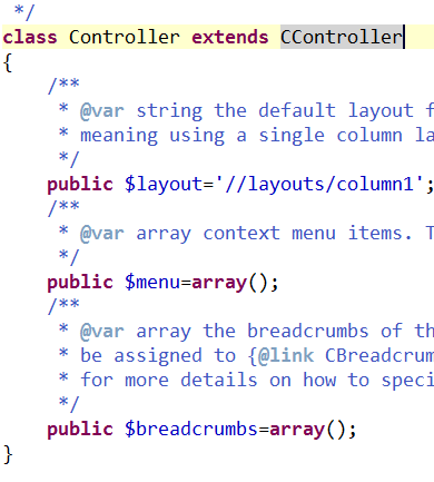 我们发现:Yii应用中,每个控制器都要继承自公共控制器“Controller”