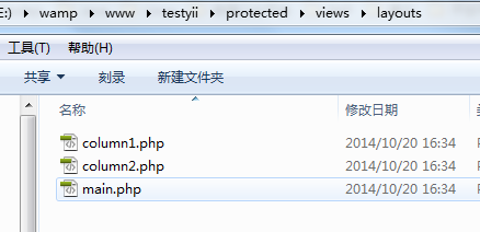 公共模板文件位于:protected/views/layouts 目录下,如下图: