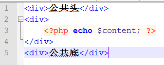 其中”<?php echo $content; ?>“为Yii中规定的模板文件中的内容替换方法