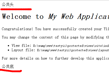 然后,修改 ”Controller“控制器中的模板文件为:public $layout='//layouts/testlayout';