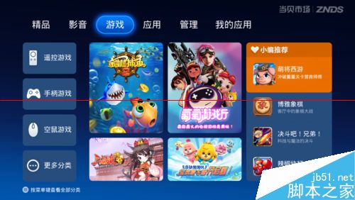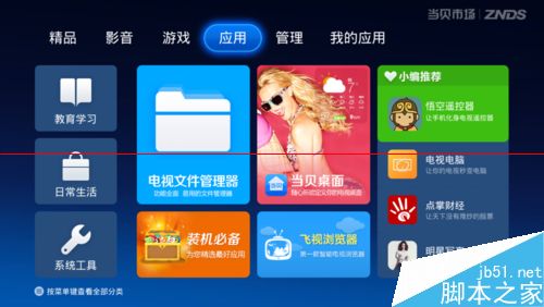 2、开启盒子后,u盘插入,有的时候没有弹出外接设备的提示对话框,那就要去自带的应用商店里下载相关软件以识别u盘中的apk安装包