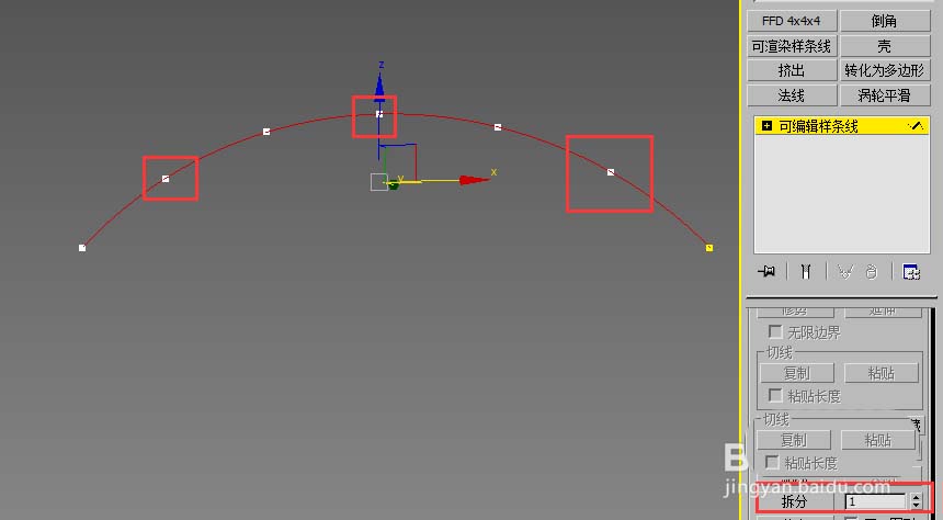 3、样条线点之间的分布不均匀也会导致模型面数不平滑,那么,我们需要利用规格化样条线命令来均匀分布点的位置达到平滑的目的。