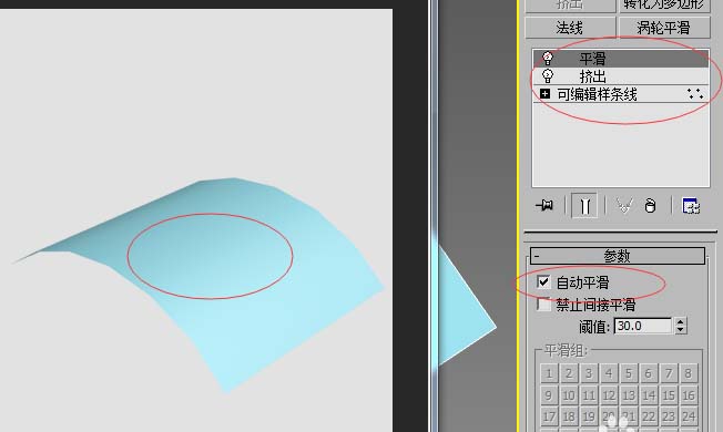 2、我们这么操作,首先拆分加点-转换为角点-然后挤出-加平滑修改器