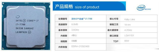 推荐的是i7-7700处理器,这款处理器是i7系列的入门款,但由于其基准频率较高,借助四核八线程的设计,无论是在图形设计还是在大型游戏方面,都能够轻松驾驭。相较于定位接近的锐龙R5-1600X处理器,稳定性强,优化更好,对于不超频的玩家来说是一个不错的选择。这款处理器基于英特尔14NM制程,采用四核八线程设计,基准频率3.6GHz,最高睿频4.2GHz,缓存8MB,热设计功耗65W,集成HD630显卡。