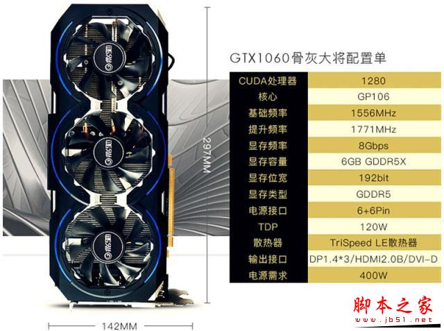 影驰这款6G显存的骨灰大将目前售价仅有1799元,搭载了NVIDIA全新Pascal架构GP106-400核心,拥有1280个CUDA核心流处理器;核心运行频率为1556MHz——1771MHz,相较于公版有一定的提升。采用6GB显存,显存位宽192bit,显存频率8008MHz,TDP仅为120W,支持DX12、OpenGL4.5等多项全新技术,完美支持VR。