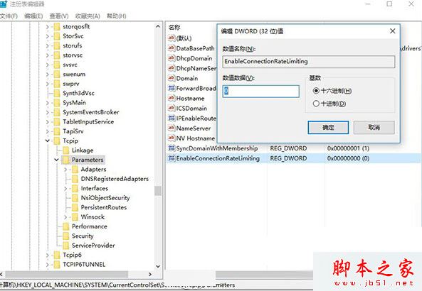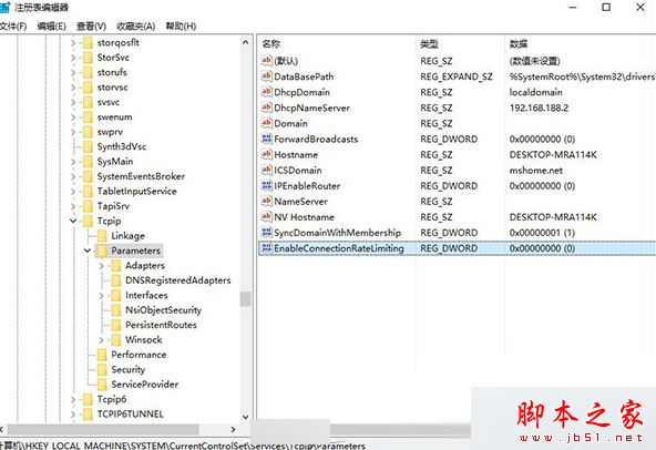 在右侧面板中找到EnableConnectionRateLimiting键值;