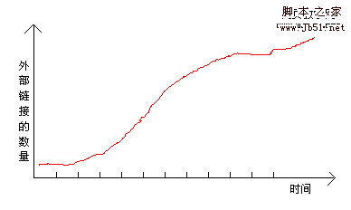先放下这个问题。我们先来看看搜索引擎如何判断一个网站的外部链接是好链接。在互联网上,如果一个网页很受欢迎,就会有很多其他的网页链接或引用。那它的外部链接增长的速度,用一个曲线图来表示是这样的: