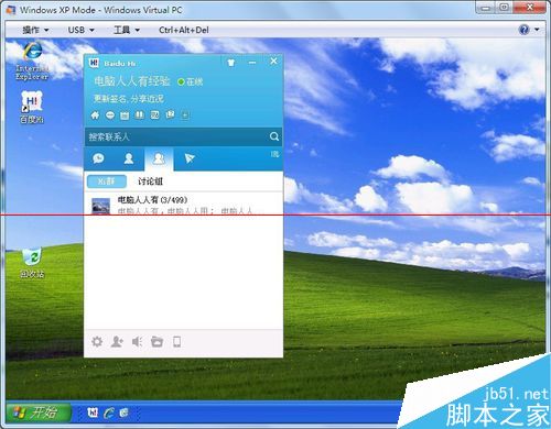 3、Windows7操作系统中不能使用百度客户端,卸载、重装HI客户端不见效。只能在虚拟机中安装,临时使用,也不错。