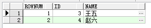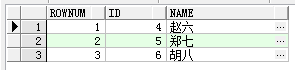 select rownum,id,name from test where rownum>2 and rownum <5;