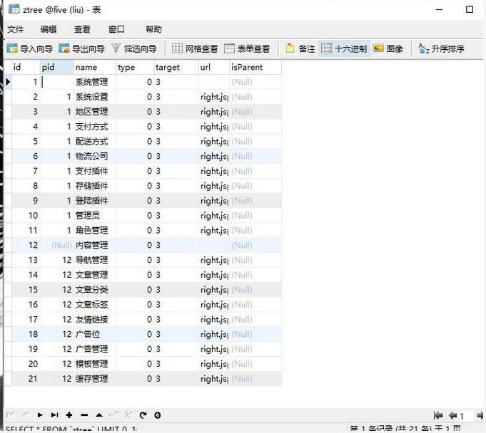 dao层就不用写了吧,只是一个查询,下面我把ztree的表字段附上