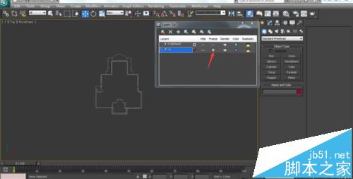 7、点击图层按钮,新建一图层命名为1p(底平面),这里的命名最好是自己容易区分容易记住有见名知晓效果的名字。选择场景中的组,将底平面点击加号加进新建图层,对于前面没有小加号的图层,点击红色小叉删除掉,注意0图层删不掉,这样不易混淆,干净利落。