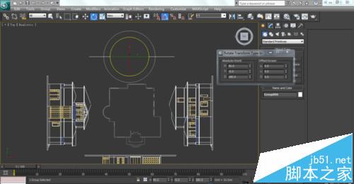 6、打组之后才能在max中坐标归零,坐标归零的好处是很容易找到物体,对鼠标的缩放没有困难。操作是右击移动工具,弹出移动坐标参数面板,分别右击左边栏的世界坐标X,Y,Z的下面一个小三角形选项,将三项参数全部归零。这时候可以看到场景中户型不见了,这时候不要着急,关掉移动参数面板,单击一下场景中空白处,按快捷键Z键,户型就最大化显示了。