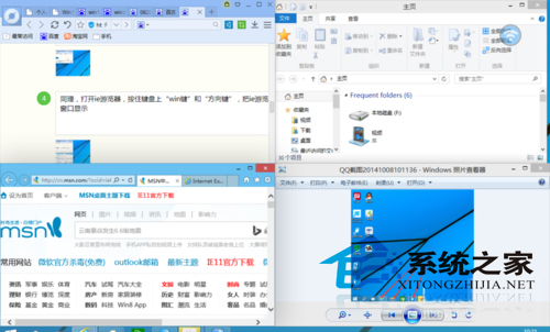 再打开两个程序,也是按照上面的方法“win键”和“方向键”都是按住。形成4个不同的窗口,这样在一个屏幕下4个视窗同时显示啦