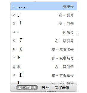 「」符号估计是很多人在输入时感觉很不便的地方,按传统的方式,需要按shift+option+B,然后翻很多页才能找到,不过通过用户词典可以定义你平时用的很多的符号和字符串。