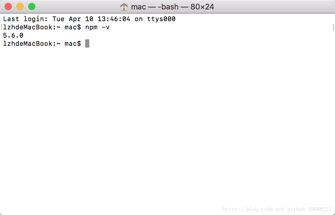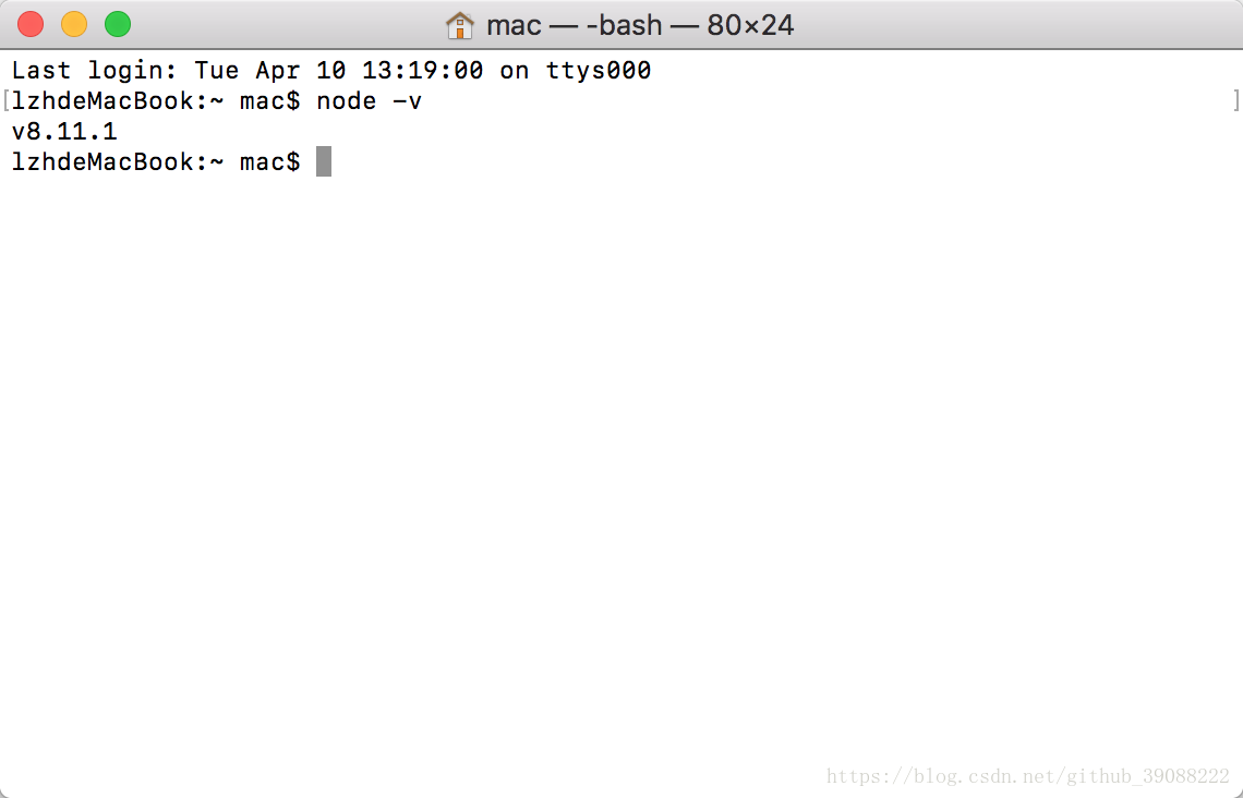 下面来测试下是否安装成功: 打开Mac下的终端输入:node -v 会出现版本号就说明成功了:
