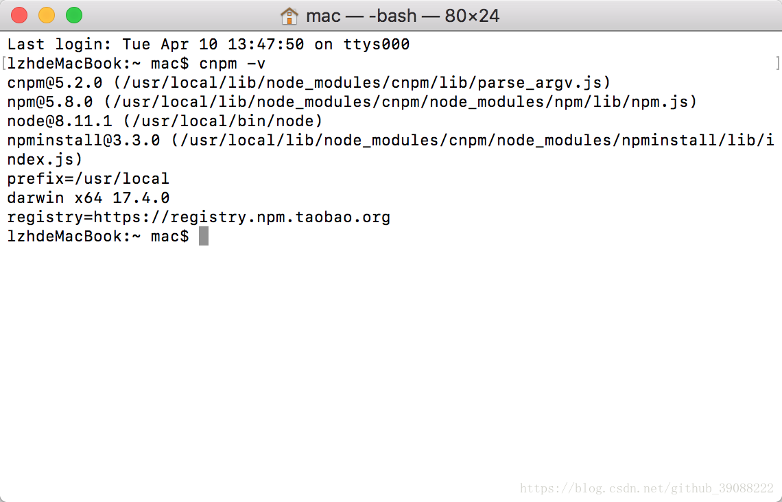 以上所述是小编给大家介绍的关于Mac下安装nodejs、npm和cnpm的教程,希望对大家有所帮助,如果大家有任何疑问请给我留言,小编会及时回复大家的。在此也非常感谢大家对靠谱客网站的支持!