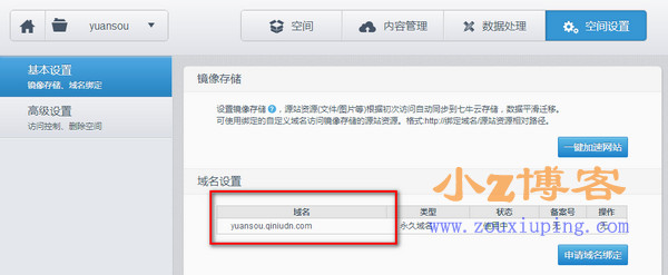 4、创建好之后配置空间,接下来我们就需要用到七牛的上传工具qrsbox