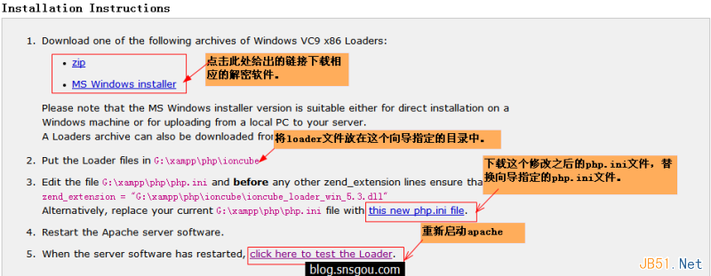 根据这个向导程序的提示,下载相应的解密软件。将下载下来的解密软件放在它指定的目录中。下载向导程序计算出来新的php.ini文件,替换系统原来的php.ini文件。重新启动apache。