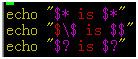$? 显示最后命令的退出状态。0表示没有错误,其他任何值表明有错误。