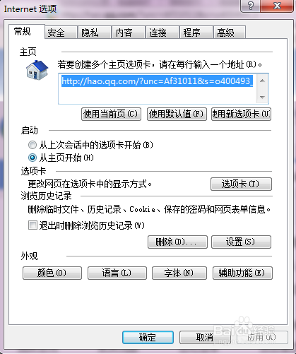 3、弹出“Internet选项”对话框