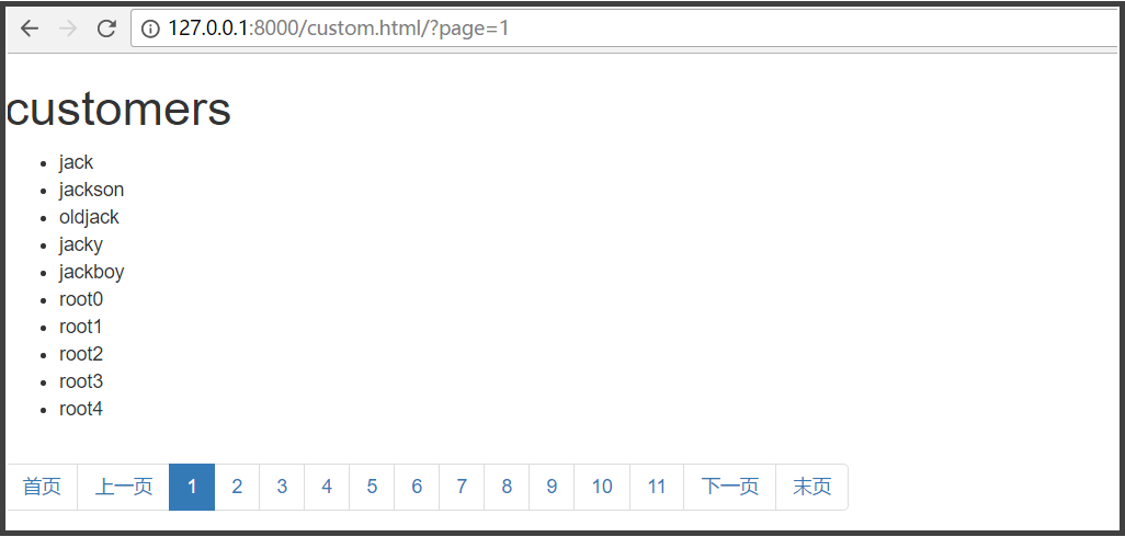 至此,就完成了利用django的分页功能自定义分页模块,可以应用在不同的业务页面上。