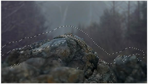 9、打开岩石素材,用多边形套索工具把岩石部分选取出来。