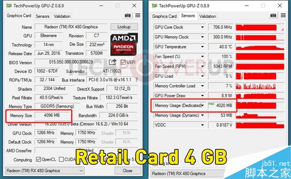 目前已经可以百分之百确认的是,带有8GB物理显存不仅开启4GB的零售版RX 480真的存在,而且真的可以解锁!