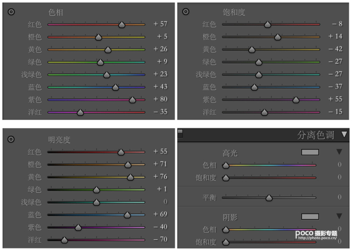 (1)对红色和橙色的肤色进行调节,使得皮肤更加有通透质感