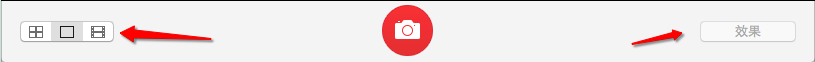 2、打开Photo Booth后,Mac会自动启动你的摄像头(如果有的话)在底部有几个按钮,这里介绍一下。