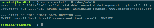 $ sudo smartctl -H /dev/sda10