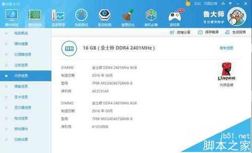 5、内存金士顿8G*2条 频率提升到2400MHZ 上一代GS60为2133MHZ频率
