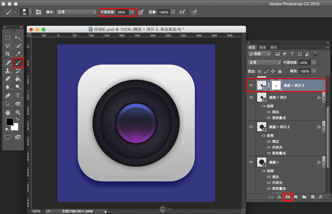 以上就是沉静服饰最近收集整理的关于用PS蒙版绘制玻璃质感的照相机图标的全部内容,更多相关用PS蒙版绘制玻璃质感内容请搜索靠谱客的其他文章。