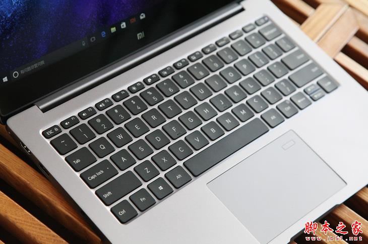 深空灰色的小米笔记本Air 13,键盘也换为更加搭调的黑色。个人认为银白色的键盘在视觉效果上显得过于朴素,黑色键盘能够更好地衬托出金属机身的质感,同时与白色的背光也能形成颜值更高的搭配。键程依然是1.3mm的键盘,触发力度、反馈手感俱佳。